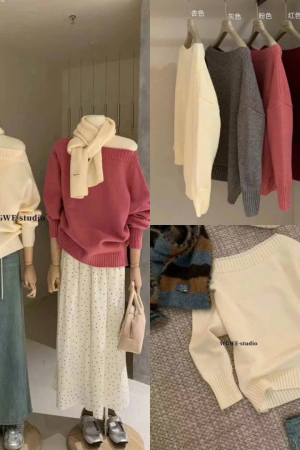 CIMISSHOP – Áo Len Lệch Vai Trơn Dày Dặn Oversize Với Bảng Màu Mới Nhất 2024 Chuẩn WGWE