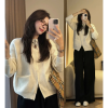 Áo Len Kẻ Lông Xù WGWE Tay Dài Lệch Vai Cúc Đồng CHUẨN TAG Có Thể Mặc Được 2 Kiểu New 2024