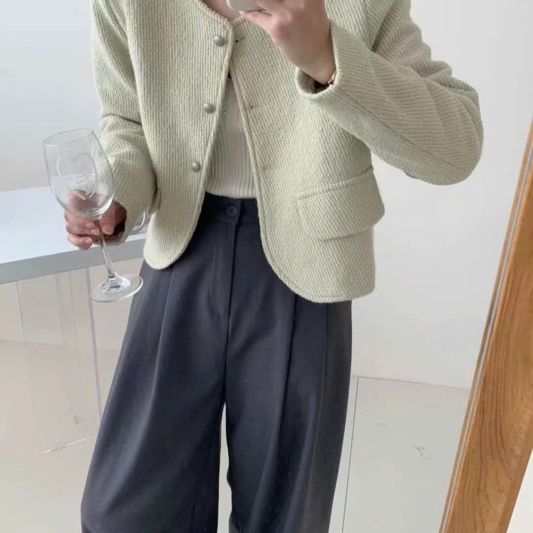 CIMISSHOP – Áo Khoác Dạ Nữ Dáng Ngắn Phù Hợp Mặc Mùa Đông Chất Dạ Tweed 2 Lớp Hàng QCCC