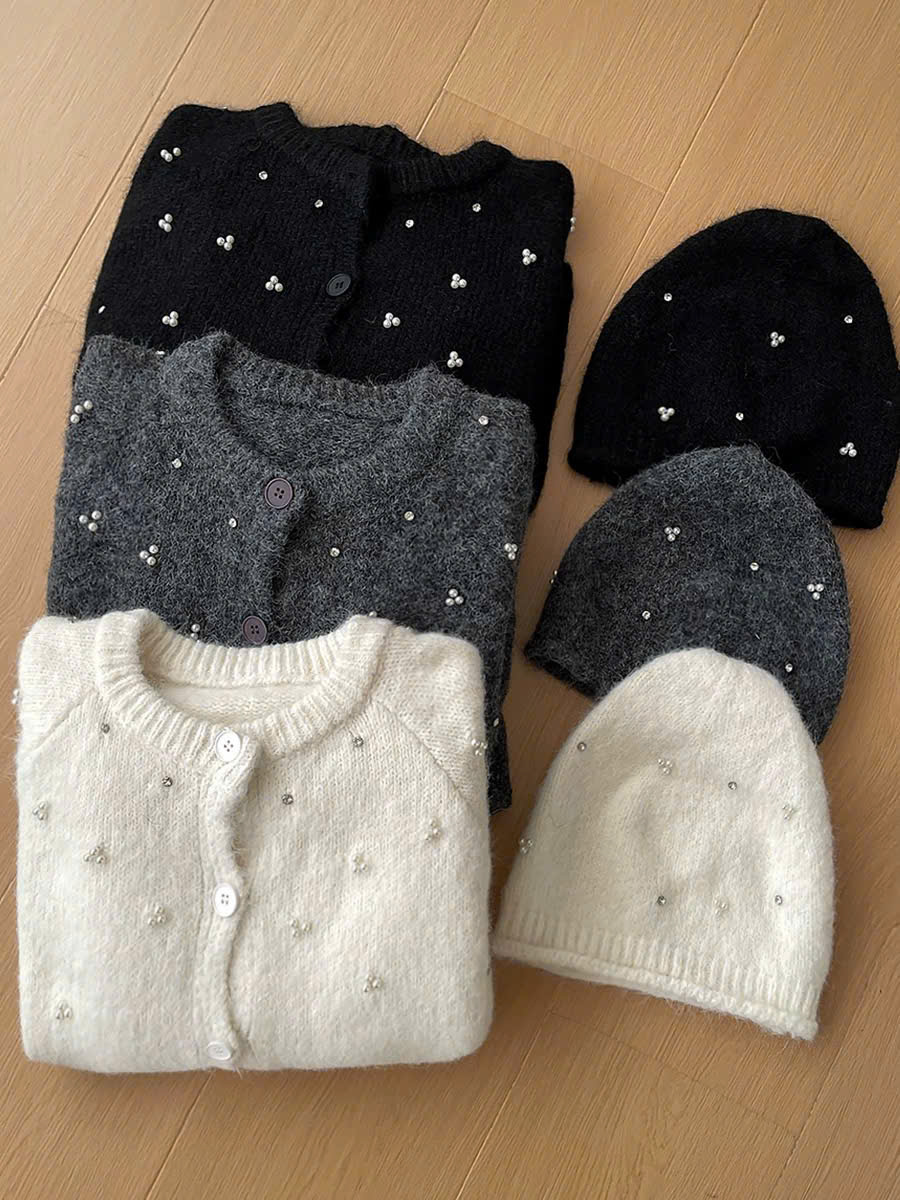 CIMISSHOP – Áo Len Cardigan Nư Đính Ngọc Tặng Kèm Mũ Hàng QCCC Loại 1 Phong Cách Hàn Quốc Trẻ Trung Nhẹ Nhàng