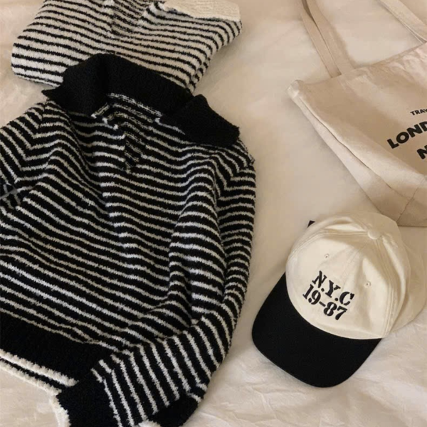 CIMISSHOP – Áo Len Dệt Kim Cổ Polo Sọc Dáng Rộng Thời Trang Thu Đông Nữ Chuẩn Hàng QC Loại 1