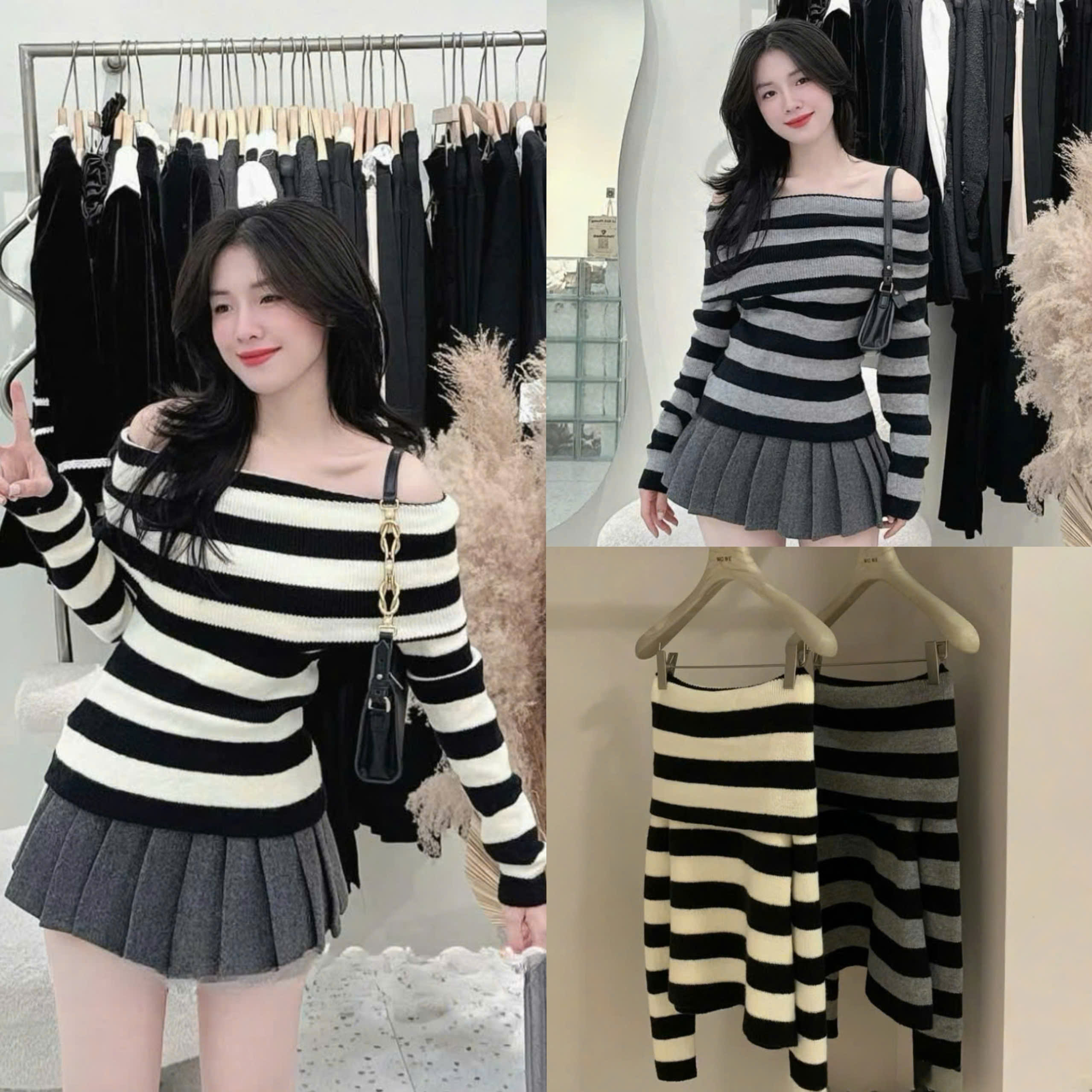– Áo len kẻ trễ vai hàng QC new 2024 tag Wgwe loại 1