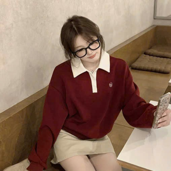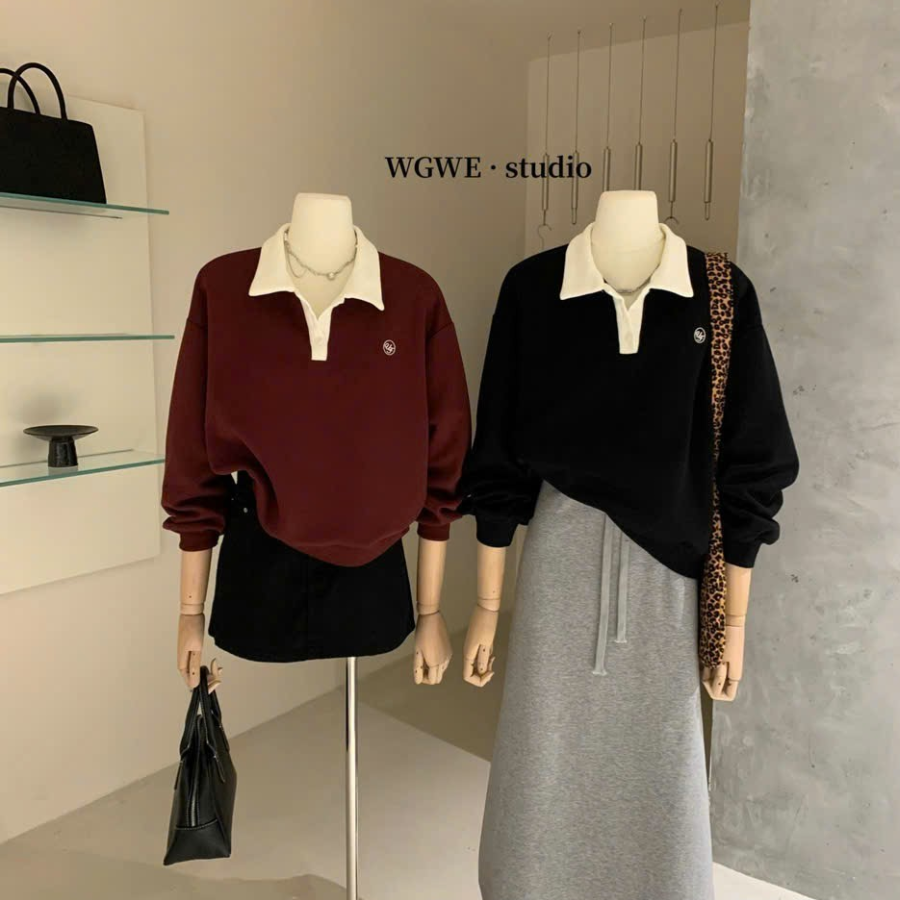 CIMISSHOP – Áo Nỉ Polo Nữ Thêu Logo Chữ Trẻ Trung Năng Động Phong Cách Retro 2024 Tag WGWE