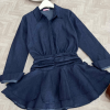 Đầm váy sơ mi jum bò denim dáng ngắn chân váy xòe cách điệu, váy bò nữ cổ sơ mi xếp ly eo hàng thiết kế