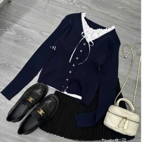 Set Áo Cadigan Kèm Áo Trong Nhẹ Nhàng Áo Thun Dài Tay Nữ Thu Đông Phong Cách Tiểu Thư Hàn Quốc Hàng QCCC