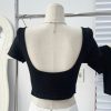 – Chất liệu:  áo chất zip co giãn, cổ vuông trẻ trung