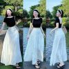 Set Áo Len Tăm Phối Mix Chân Váy Cạp Cao Có Lót Quần Siêu Xinh