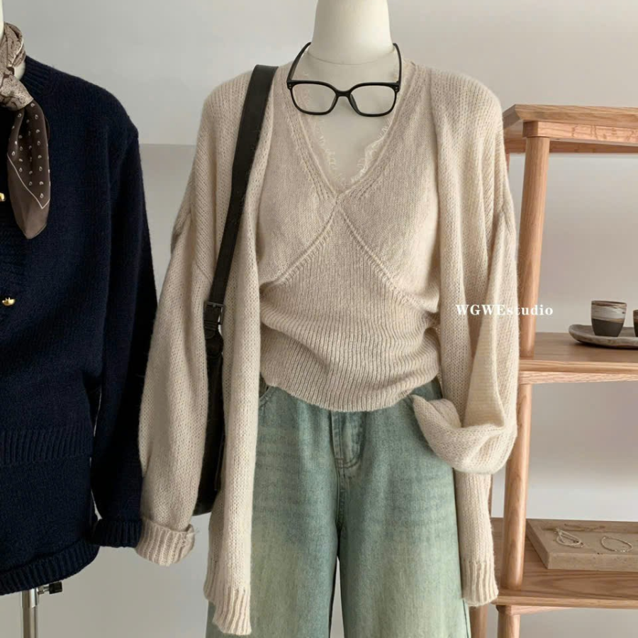 – Áo len cardigan + kèm áo trong nhẹ nhàng chuẩn tag wgwe